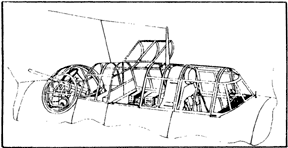 SB2C-3 cockpit area with "turtleback" down and rear machine guns deployed.